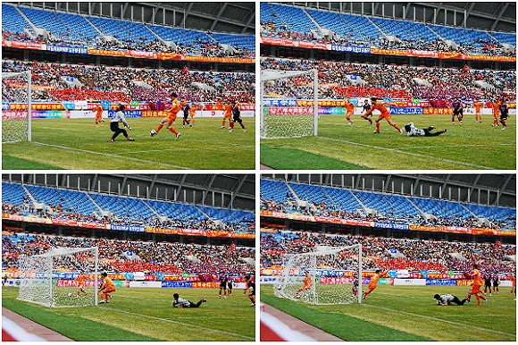 65分鐘,比賽出現有趣一幕,北理工隊進攻時,邊裁舉旗示意犯規。但主裁并沒有鳴哨,結果東進隊門將張烈以為要主罰后場任意球,將球放在地下,就在此時北理工隊員上前搶球,幸虧張烈將球踢出邊線。就當北理工隊員要發邊線球時,萬大雪判罰張烈主罰后場任意球,這引起了北理工隊教練和隊員的不滿。68分鐘,東進隊在北理工禁區左側獲得間接任意球機會,球發出后被北理工門將沒收。73分鐘,東進隊前場獲得任意球,李根將球傳入禁區,東進隊頭球攻門,可惜皮球被北理工后衛從門線上擋出。