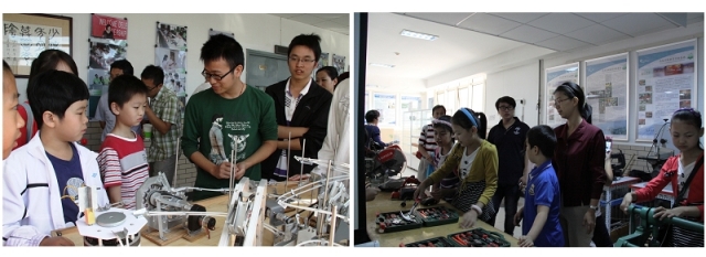 本次科普開放日活動把全民科學素質工作與今年開展的“科學發展、輝煌成就”主題教育活動結合起來,把宣傳成就、學習科技典范、傳播科學知識、弘揚科學思想與宣傳黨的偉大成就和中國特色社會主義結合起來。唱響共產黨好、社會主義好、改革開放好的主旋律。其中學生設計作品“長征組歌”,通過歷史事件與機械系統的巧妙結合,實現了機構運動再現了紅軍長征的艱難歷程。它既是一個機械原理的展示陳列,也是一個紅色教育展示舞臺,是具有深刻愛國主義教育意義的設計作品。