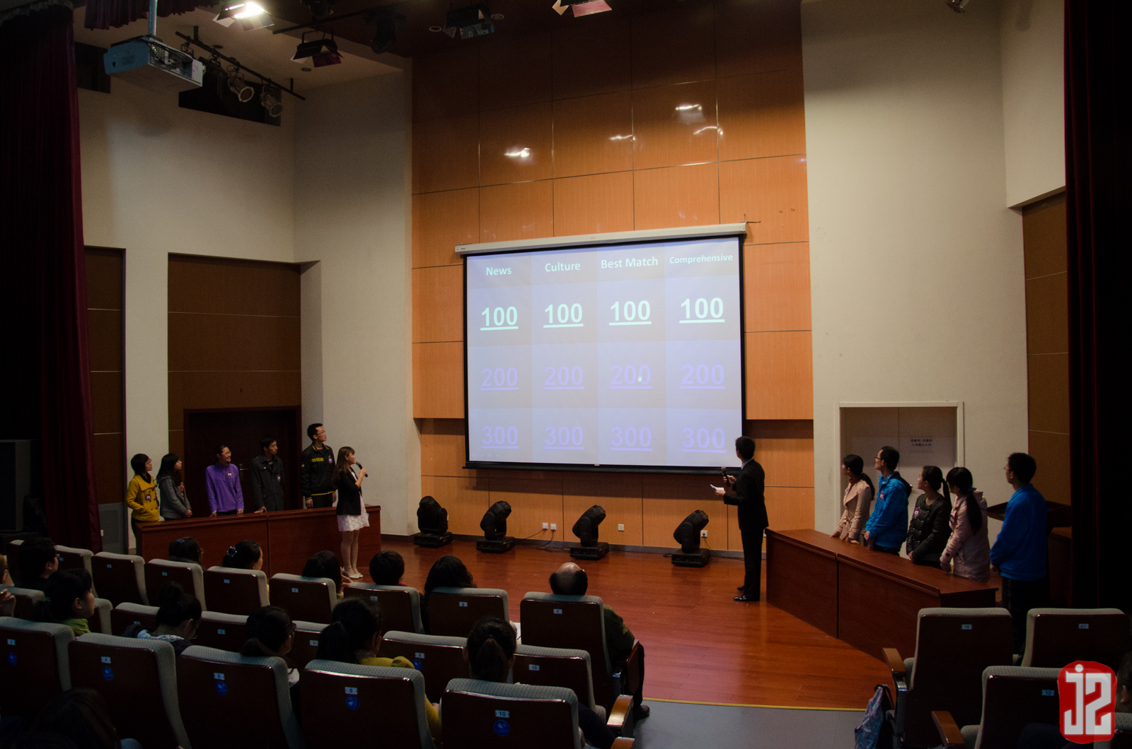 比賽分為三個環節,進行淘汰賽制,第一輪為分值選擇題,十位選手按順序輪流從題庫中選擇三題作答,題目分值分為100,200和300。要在有限的時間里審題并給出答案具有相當程度的挑戰性,現場觀眾對成功給出正確答案的選手毫不吝惜自己的掌聲,現場氣氛十分熱烈。