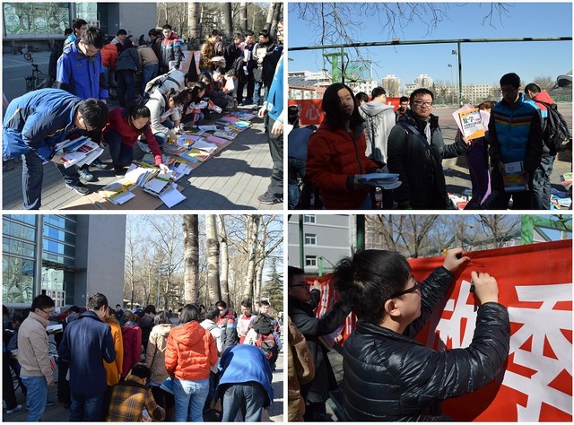2014年3月14日,“追夢•奉獻傳真愛”畢業生贈書活動在中關村校區如期舉行。志愿者們將前期收到的捐贈書籍資料分類整理,在贈書現場向同學們增送總量近千冊,包括考研類書籍、機械與車輛學院各專業課學習資料、英語學習類書籍,以及其他各種選修課書籍如微觀經濟學等。前來領取書籍資料的同學絡繹不絕,很多同學一邊挑選自己所需的書籍,一邊給其他同學打電話通知前來挑書,經統計,當天共有200余名包括機械、宇航、機電、信息、自動化等多個學院的學生前來領取書籍資料。