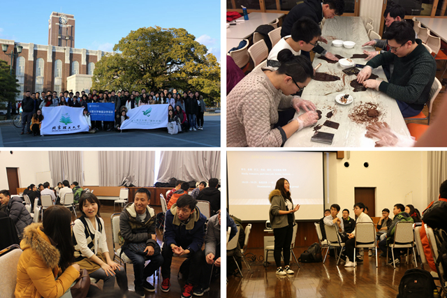 日本受中國古代文化影響深厚,大學校園不乏讀書求學的華僑華裔和喜愛中國文化的日本學子。北京理工大學的同學們在正式訪學第一日便迎來了中日大學生交流會。此次交流會上,共有9位分別來自京都大學及同志社大學不同專業(yè)的日本學生,與北理學子展開了別開生面的互動交流。交流會的華裔主持向北理來訪學生詳細介紹了京都大學的歷史沿革、自由學風及獨特傳統(tǒng),隨后進行分組交流。各組同學就各種自己關(guān)心的主題發(fā)起討論,場面精彩紛呈。會后,中日兩國學子在京都大學標志景觀前合影留念,發(fā)音混雜的“茄子”聲和綻放的笑臉,是中日學子友誼的真情流露。此外,同學們訪學期間與來自世界各地的國際友人積極交流,共同游戲,在歡聲笑語中締造了深厚的友情。