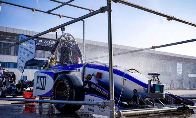12月1日下午,2018賽季中國大學生方程式系列賽事(電動組和無人駕駛組)頒獎典禮在珠海國際航展中心圓滿落幕,本賽季電動組和無人駕駛組賽事首次從襄陽移師珠海,賽道類型采用與德國賽相同的樁桶式賽道,競技性更高。2018賽季中國大學生電動方程式大賽報名參賽車隊共48支,989人參加;中國大學生無人駕駛方程式大賽共9支車隊,183人參加;兩賽到場觀摩隊員2000余人,賽事規模再創新高。經過精彩激烈的角逐,我校無人駕駛大學生方程式車隊攜自主研發、設計、制造的賽車“灰鯊Ⅱ”參賽,以總成績第一名成功衛冕總冠軍,并同時獲得高速循跡單項冠軍,無人系統答辯第二名,賽車設計第三名。